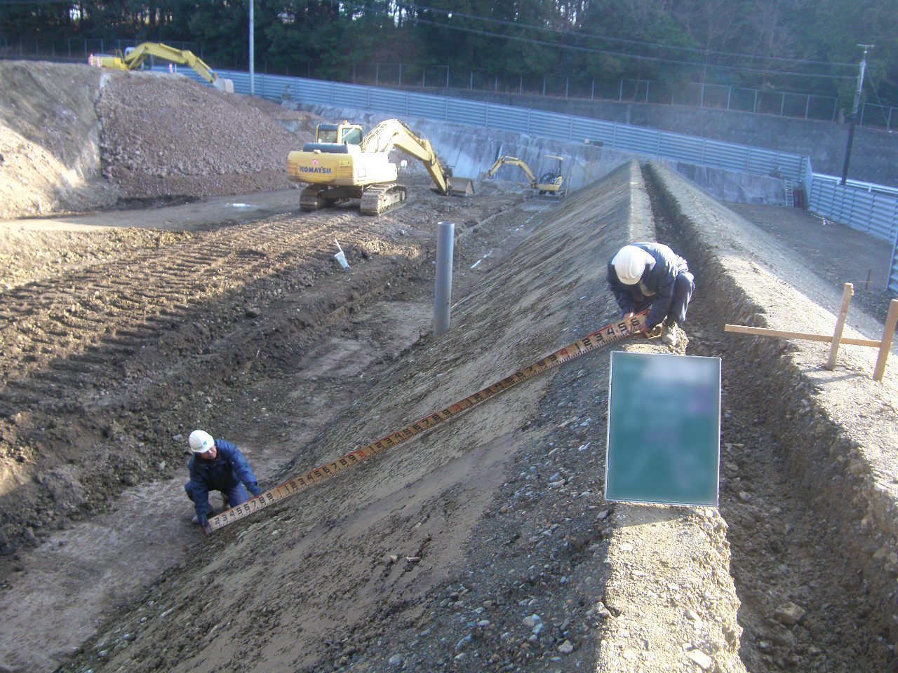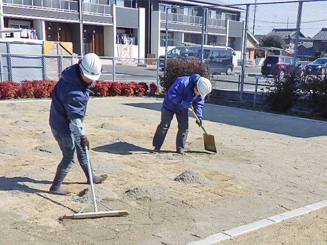 住宅地や工業地などの用途に応じて、土地を切り盛りし、地形を調整して均平な地盤を作り出したりするため、地盤改良工事や盛土工事、路盤工事、舗装工事などが行われます。